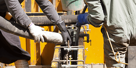 ただコンクリートを流し込むだけでは中に空気が入り、強固な基礎にはなりませんので、空気を抜きながら、コンクリートを流し込んでいきます。